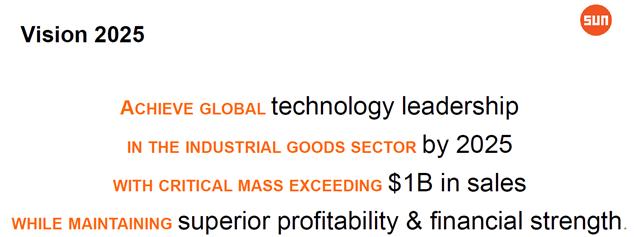 Sun’s strategic roadmap includes product and service differentiation, disciplined and thoughtful leadership throughout our global organization and ensuring that all processes and activities consider the view of the customer. We have identified and have begun applying several tactics to execute our strategies which include capitalizing on our unique and deeply rooted values, structured human capital development and differentiated engineering for both products and processes. Internal key performance indicators are used on a daily basis to align our short-term actions with our long-term strategy.
